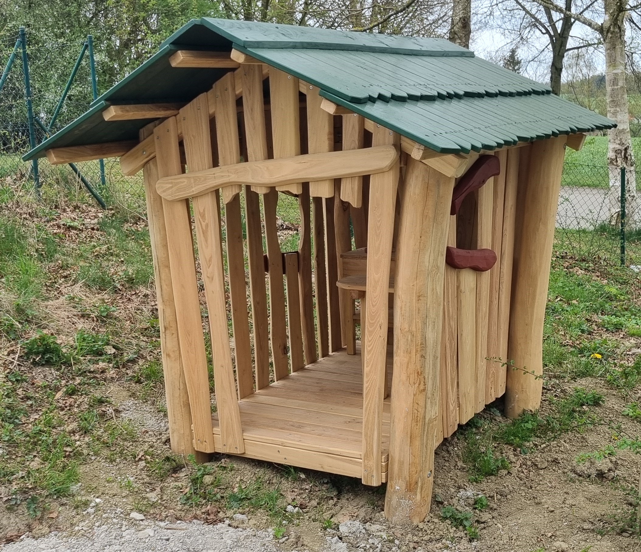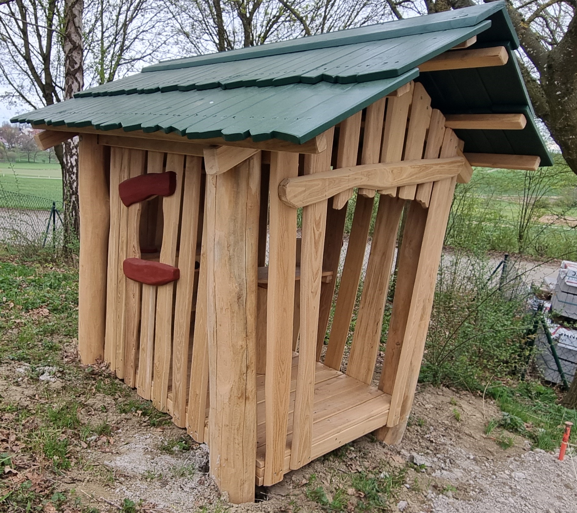 Das Spielhaus wird komplett vormontiert angeliefert - bei der Anlieferung muss ein Abladehilfsmittel (Gabelstapler o.ä.) zur Verfügung gestellt werden!