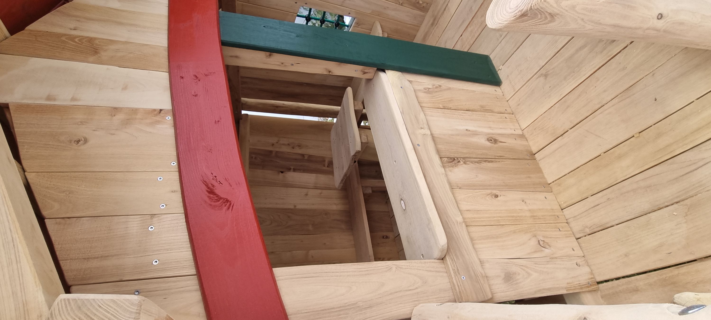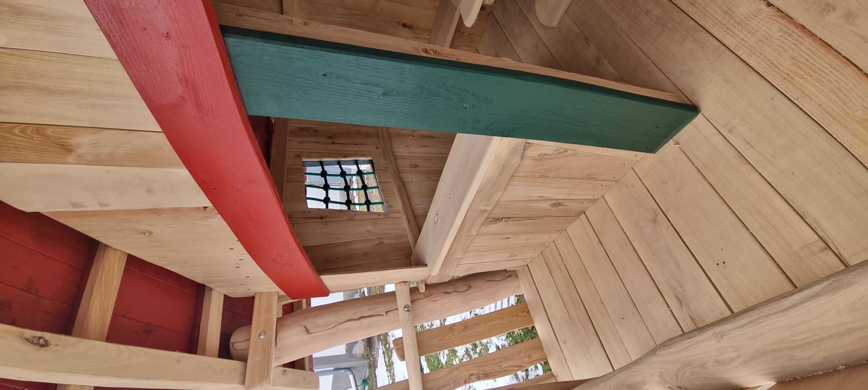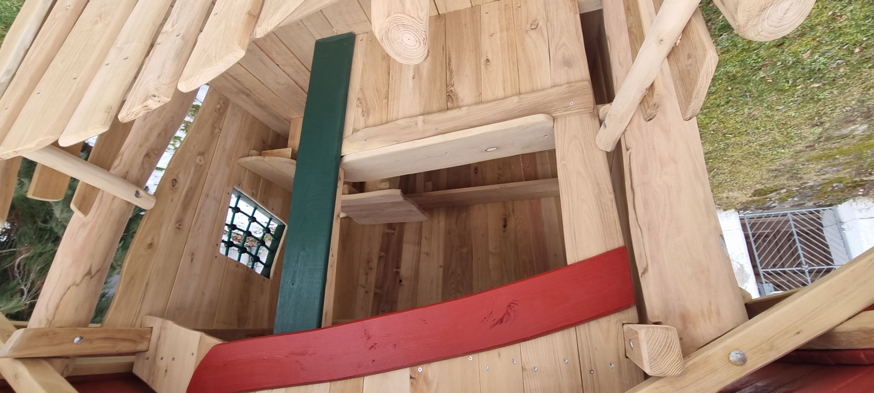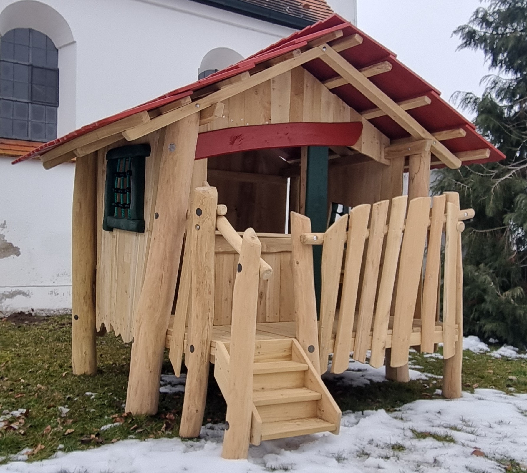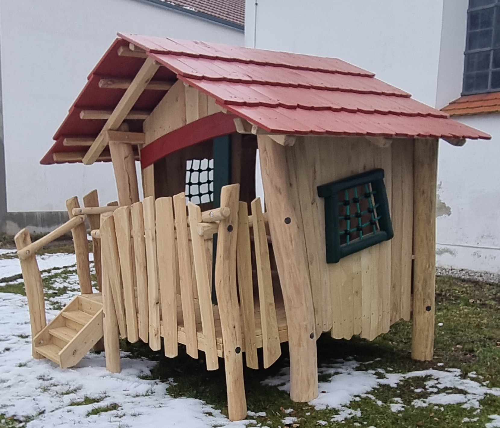 Das Spielhaus wird komplett vormontiert angeliefert - bei der Anlieferung muss ein Abladehilfsmittel (Gabelstapler o.ä.) zur Verfügung gestellt werden!