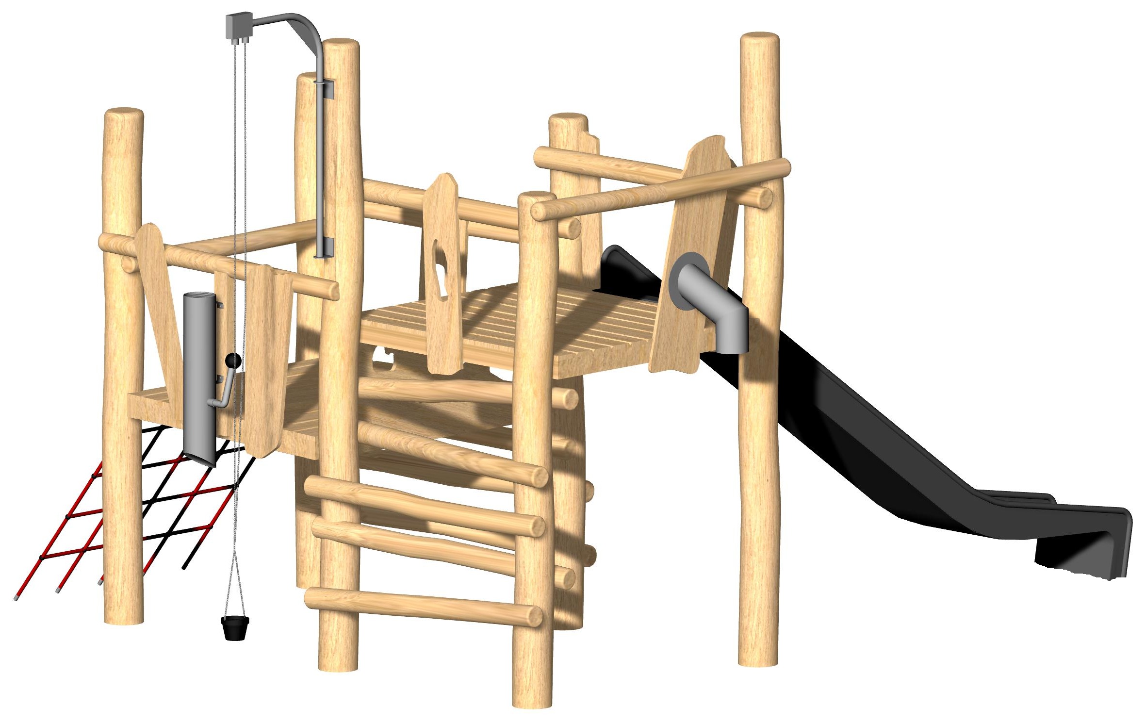 Unser Sandturm Bruck ist ein robuster, kindgerechter Spielturm aus Robinienholz, entwickelt für Spielplätze, Kitas und öffentliche Spielbereiche. Er vereint kreatives Spielen mit motorischer Förderung – durch naturnahe Materialien und sichere Bauweise bietet er langfristigen Spielspaß.