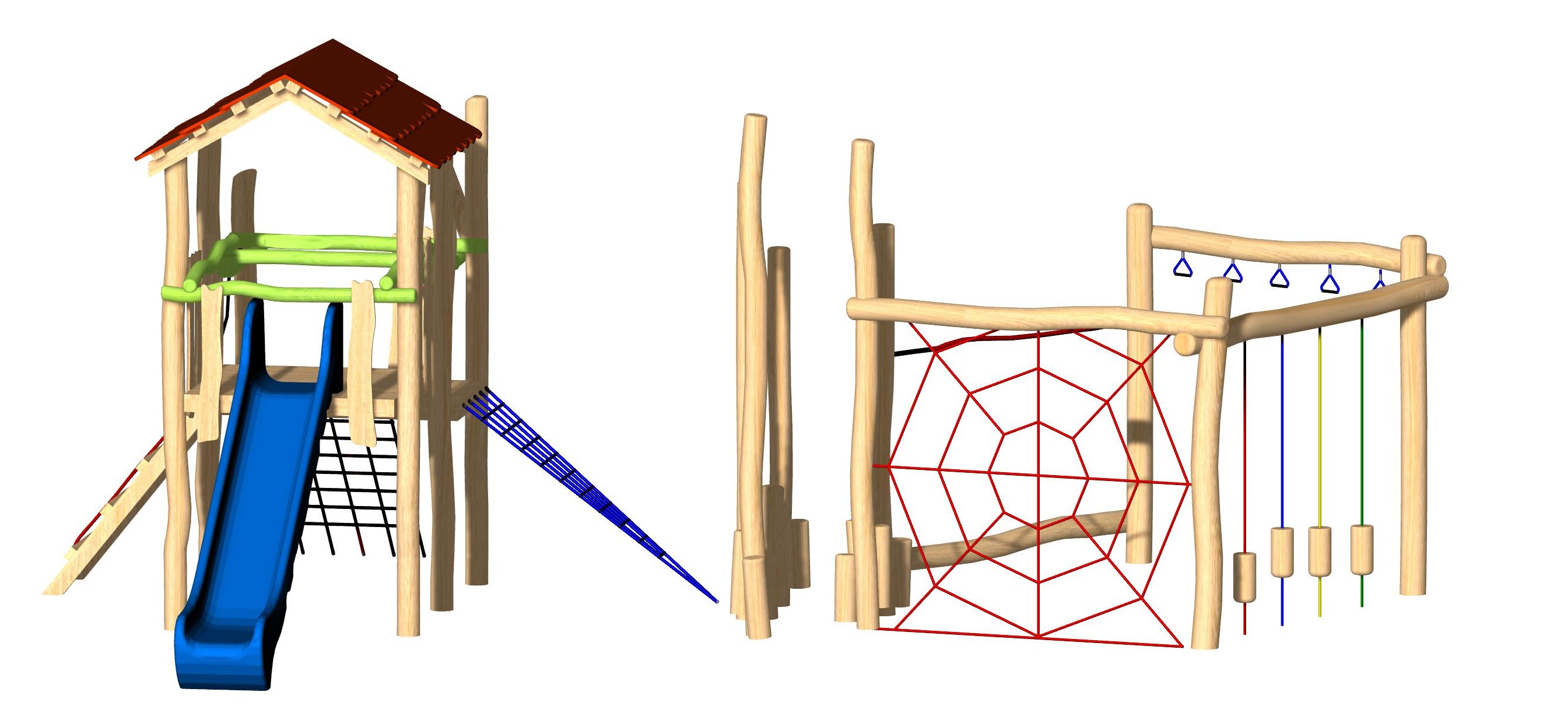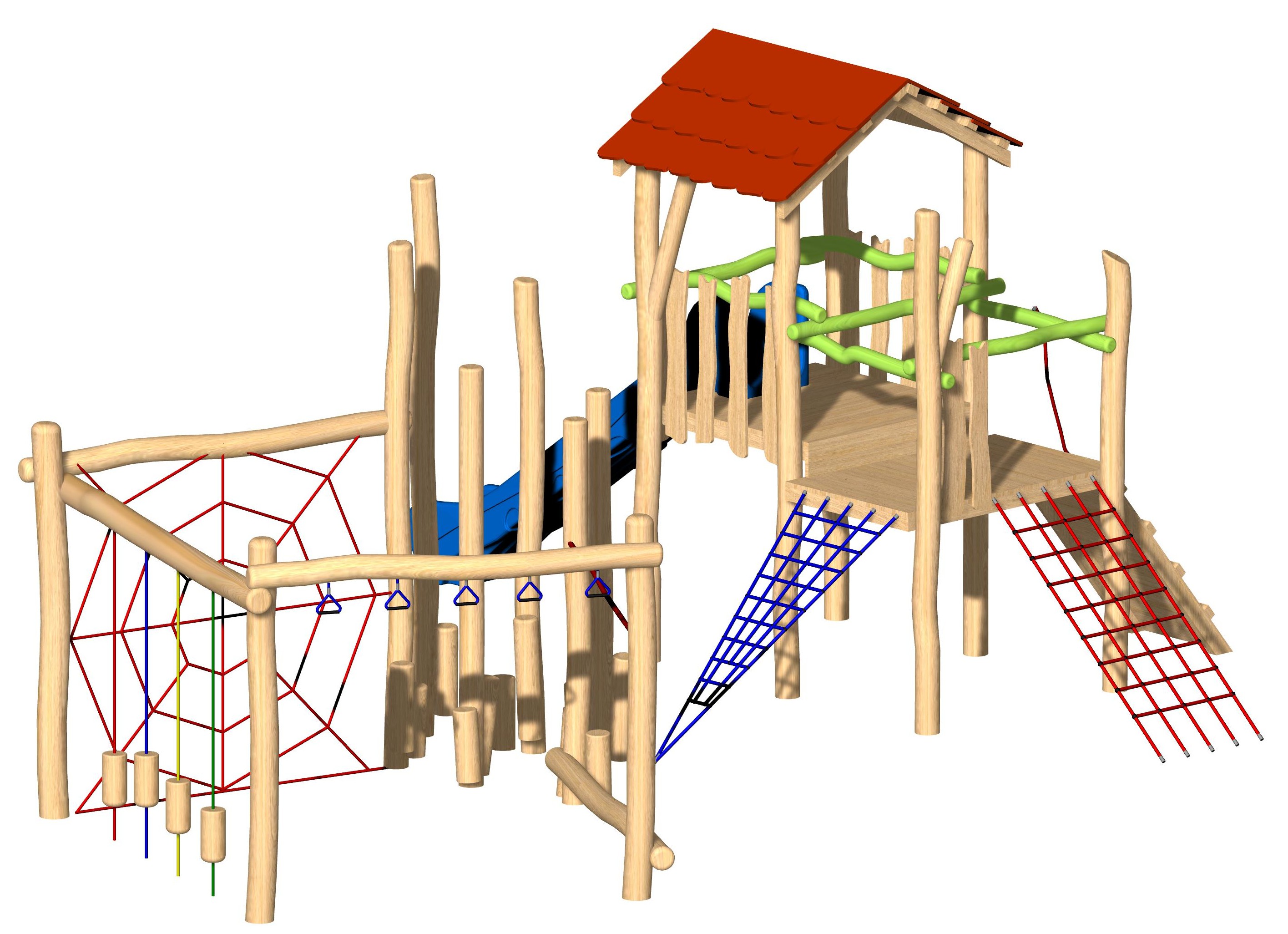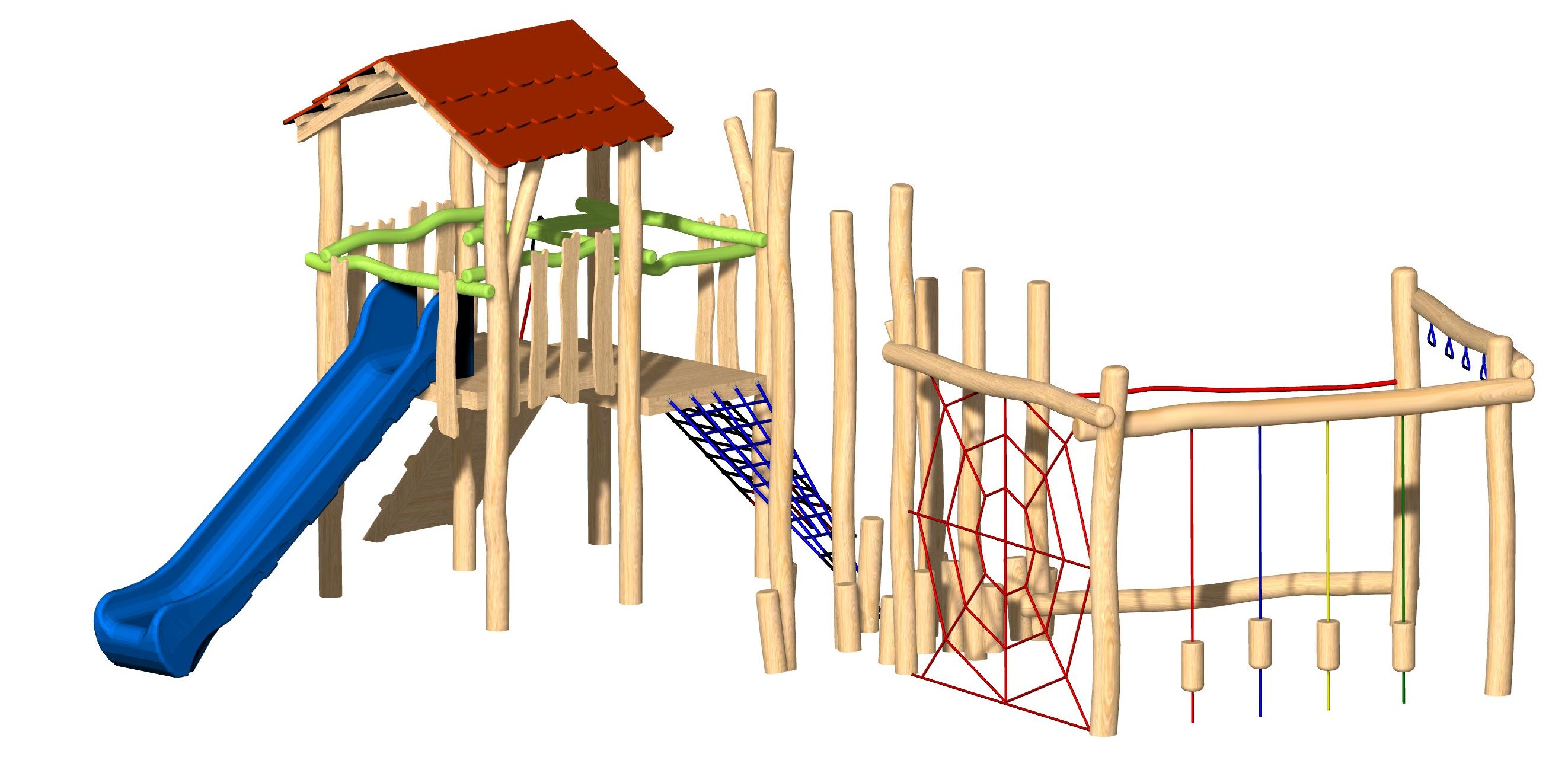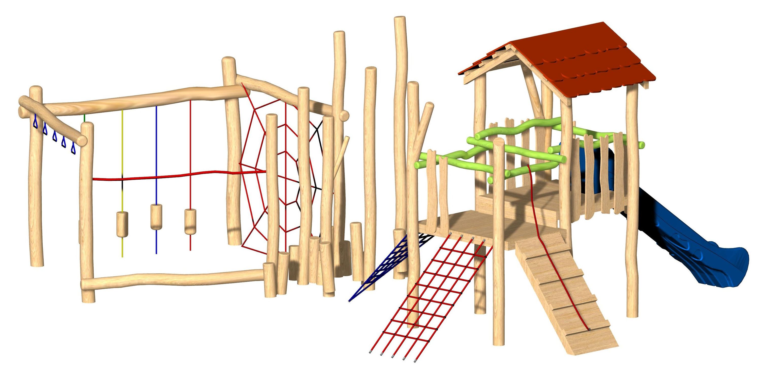 - 4 Seile mit hängenden Hölzern (Seilfarbe bunt)