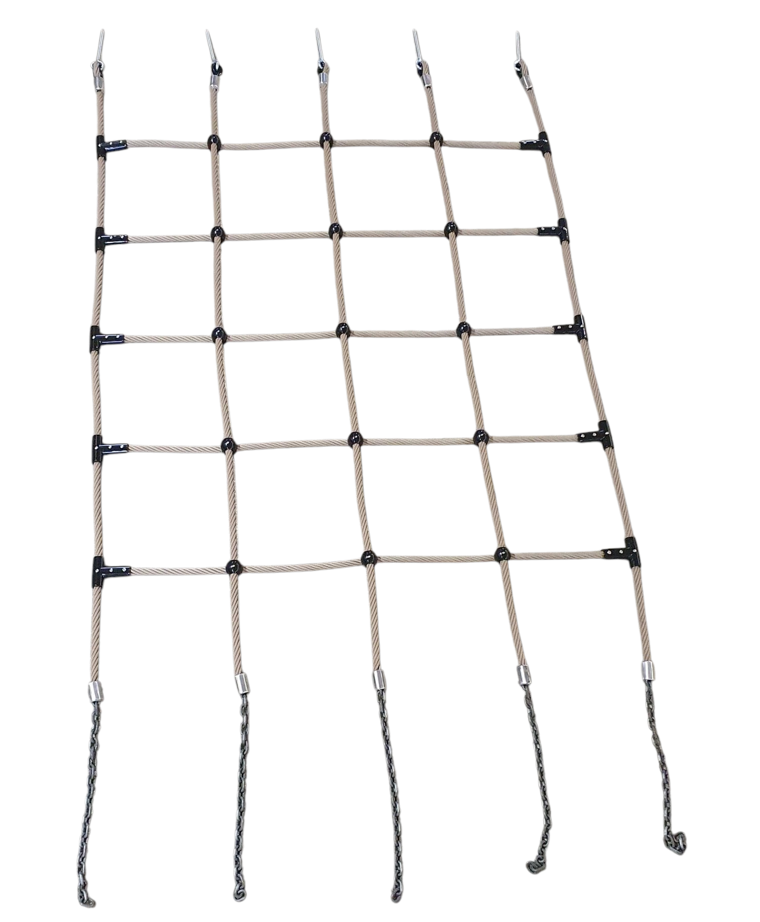 Zur Einhaltung der DIN 1176 bei der Montage unserer Seile und Netze empfehlen wir Ihnen, einen Spielplatzsachverständigen hinzuzuziehen.